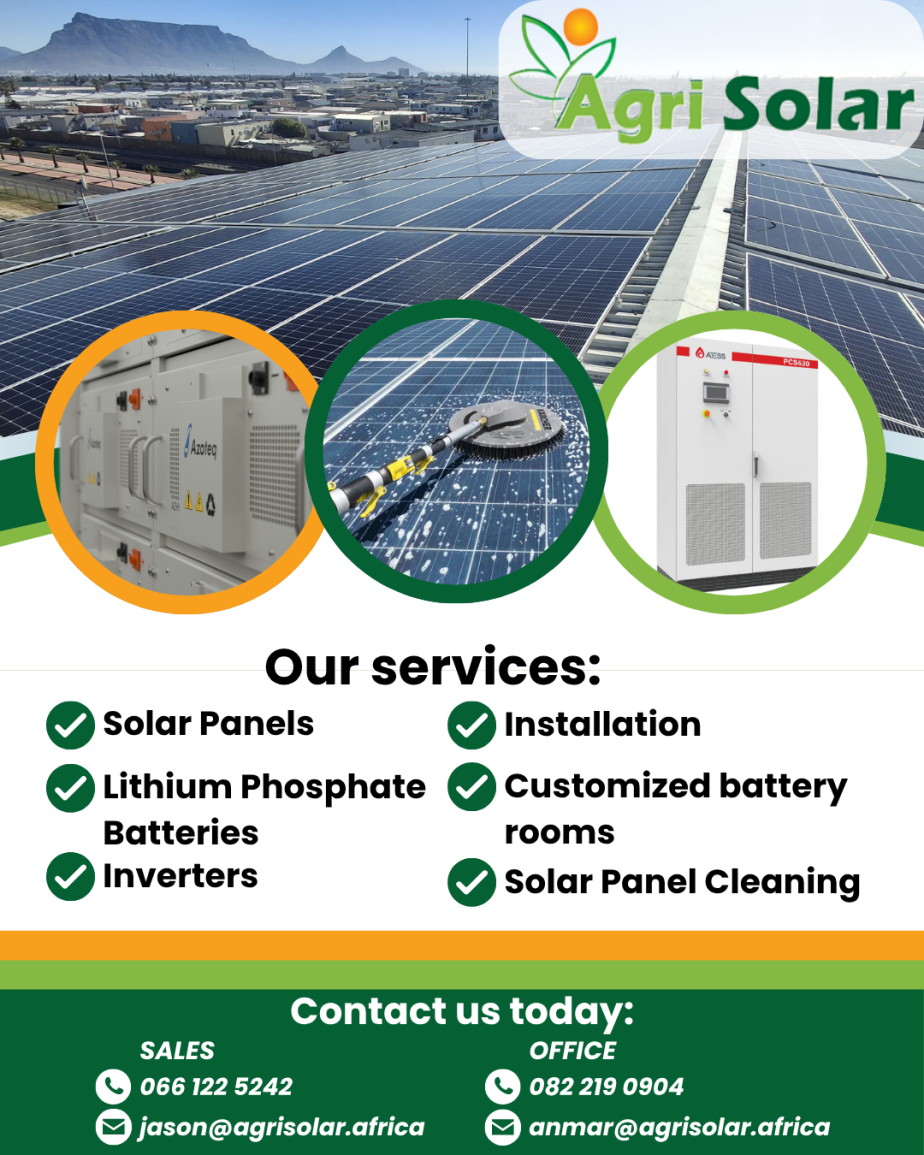 Agri Solar provides renewable energy solutions for farms, homes, and businesses. From solar pumping and water heating to hybrid and off-grid systems, they help you cut costs, stay powered during load-shedding, and move toward a sustainable future.